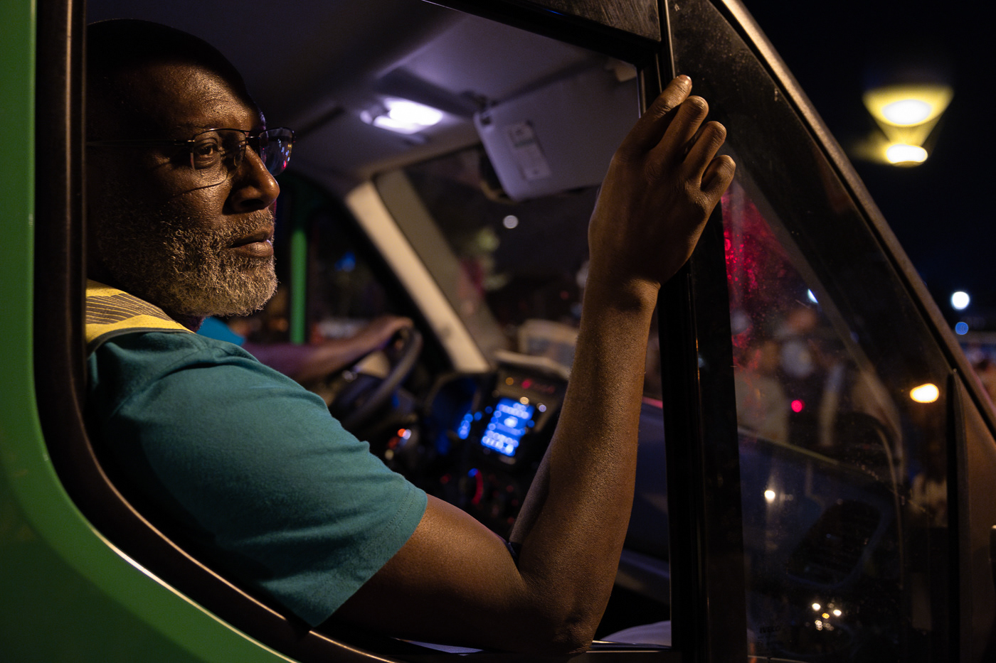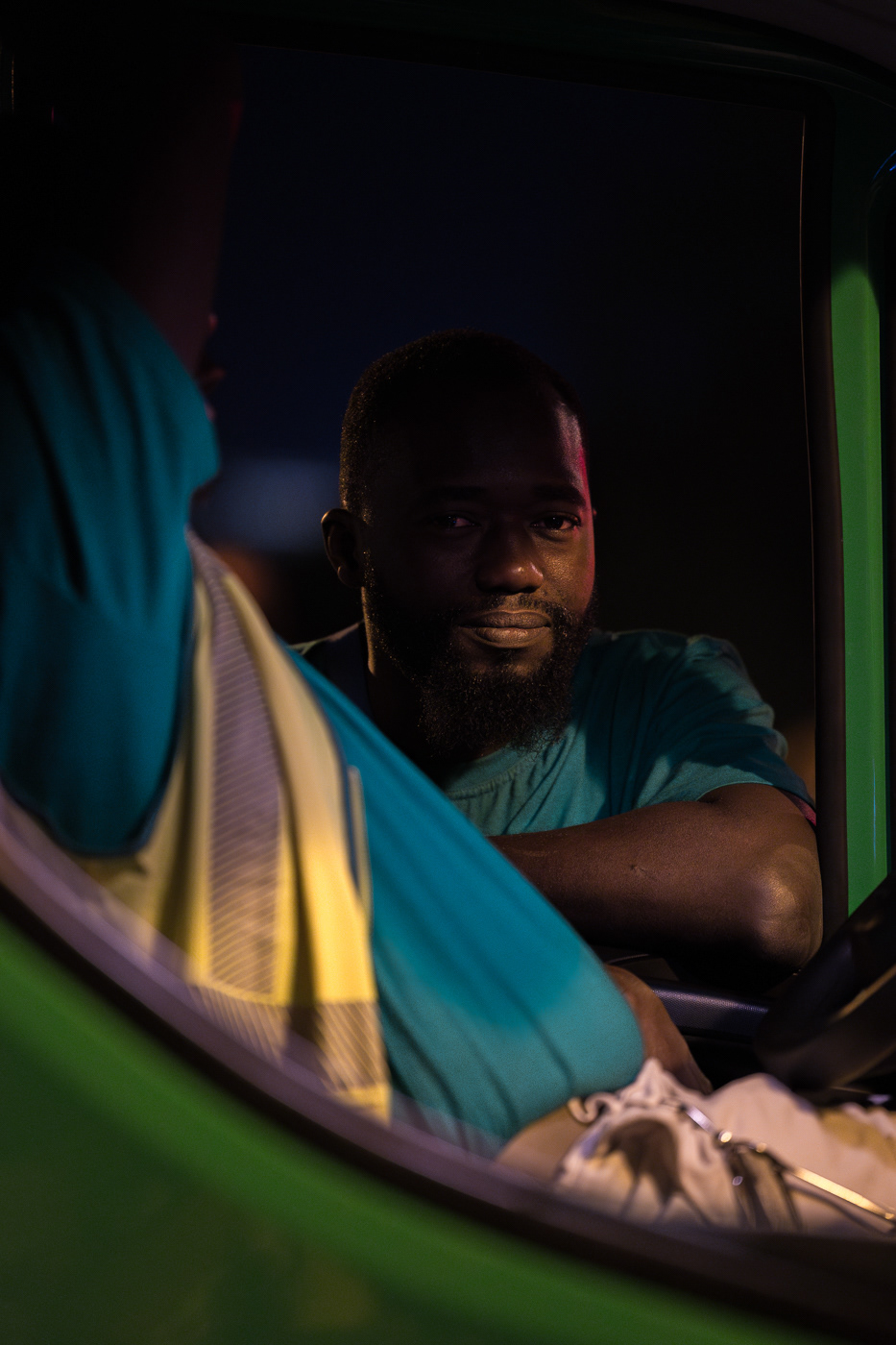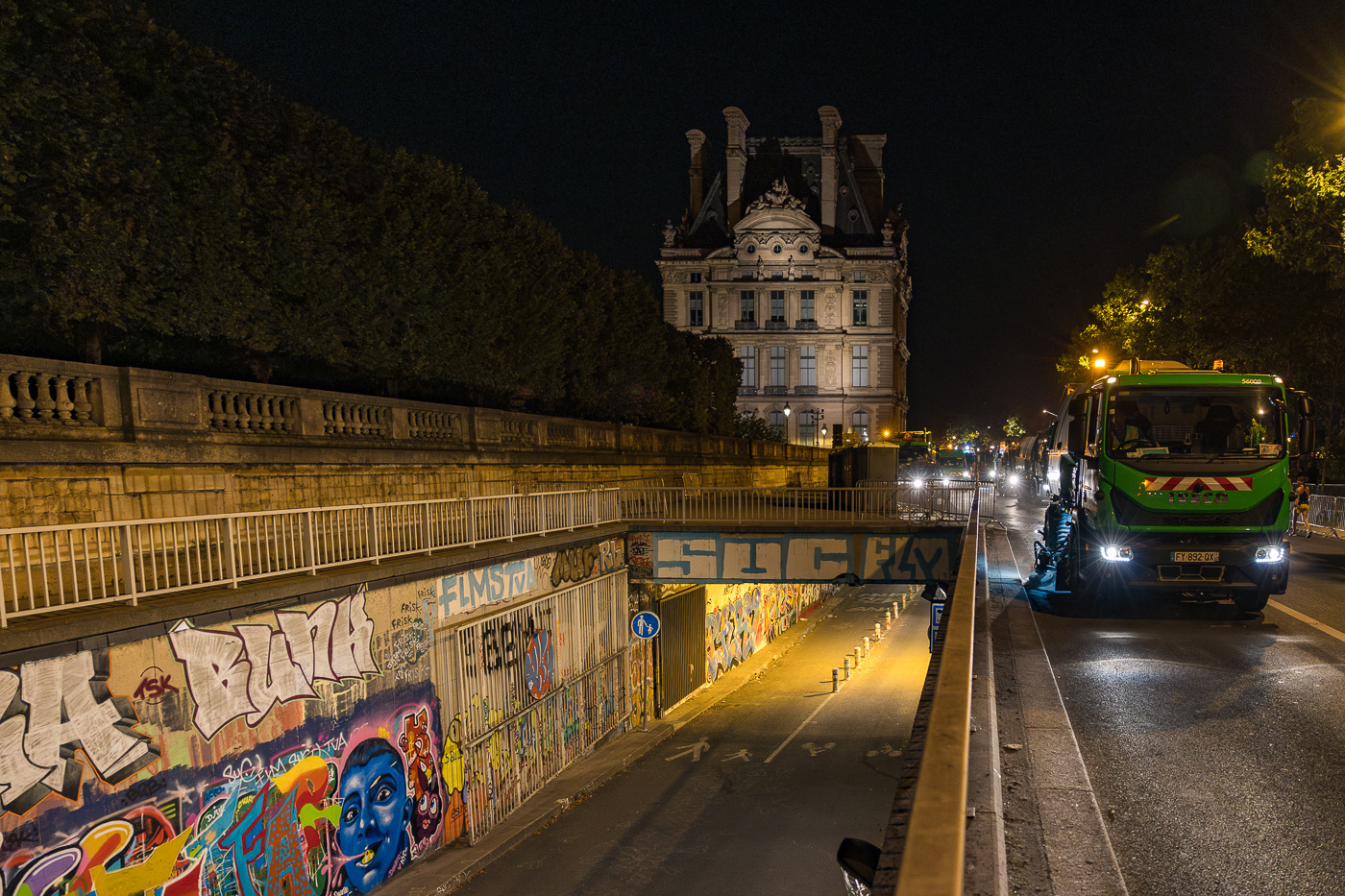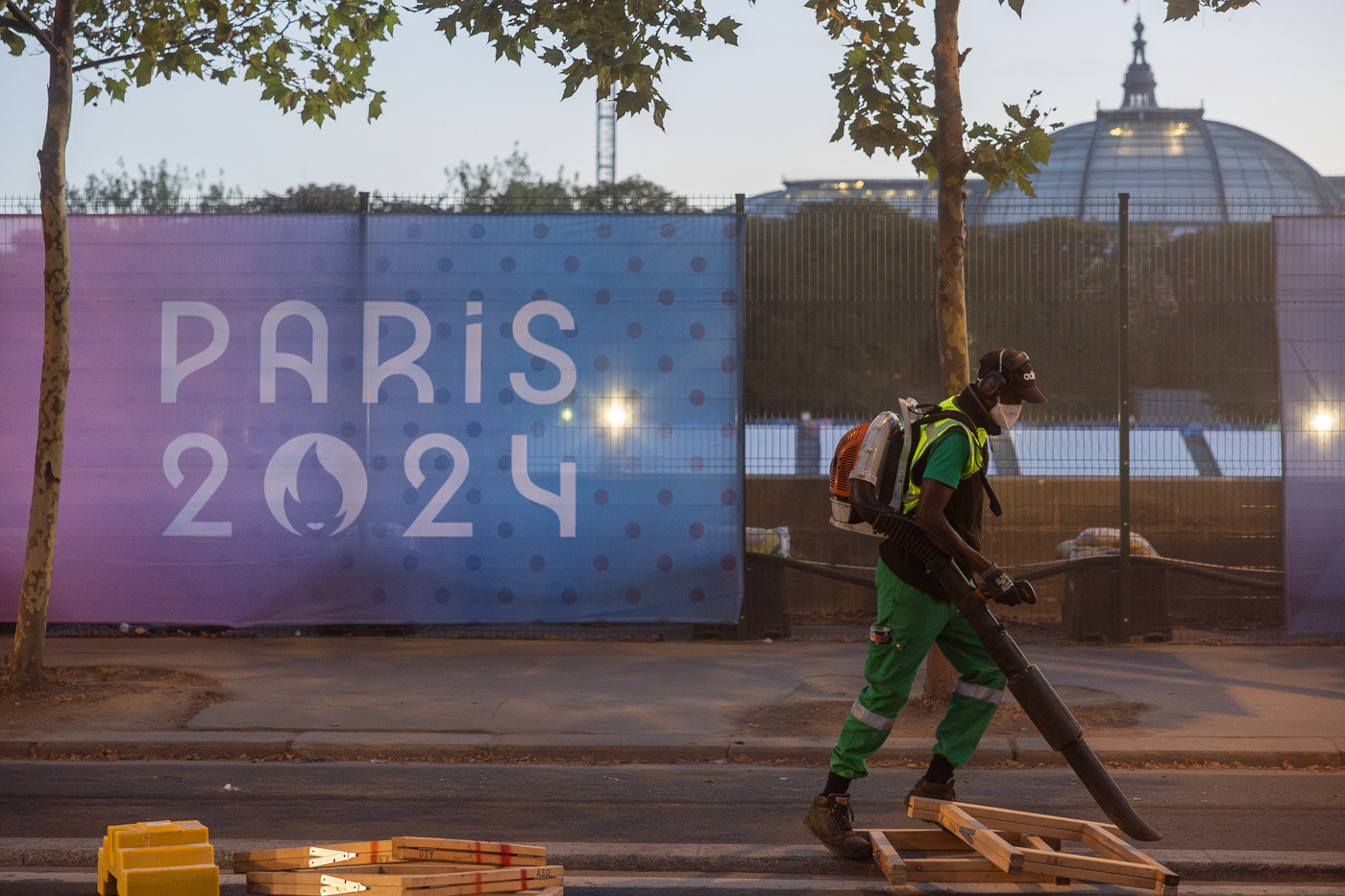 Avec la série “JO : les champions de l’ombre”, Anton Reyes révèle le travail invisible des éboueurs de nuit de Paris, en particulier celui de la Fonctionnelle, une brigade d’élite surnommée “GIGN de la Propreté”. Active 24h/24 et 7j/7, cette unité d’intervention couvre des opérations sensibles, là où les équipes classiques du STPP (Service Technique de Propreté de Paris) ne peuvent se rendre : nettoyage post-manifestations, entretien nocturne du périphérique, nettoyage des grands marchés ou encore de zones plus sensibles comme les camps de migrants démantelés ou les accidents de la route. Pour ce projet, le photographe a suivi l’équipe de nuit de la Fonctionnelle lors d’un événement d’une envergure exceptionnelle : les Jeux Olympiques de Paris 2024. Pendant cette période, ces agents ont assuré des missions de maintien et de remise en propreté autour des sites olympiques, et en particulier la préparation nocturne des voies publiques avant le départ d’épreuves comme le marathon ou le cyclisme. Dans les coulisses de cet événement spectaculaire et ultra médiatisé, l’équipe de nuit a travaillé dans l’urgence et la discrétion, permettant aux spectateurs et aux athlètes de vivre les Jeux dans les meilleures conditions. A travers ces images, Anton Reyes rend hommage aux agents en uniformes verts présents dans cet espace-temps nocturne ambigu où le temps semble à la fois suspendu et fuyant. Malgré l’épuisement et l'invisibilité qui caractérisent leur travail, ces “champions de l’ombre” remplissent leur mission répétée nuit après nuit, accomplissant leur propre course contre la montre, jusqu’à l’aube et l’éveille de la ville.